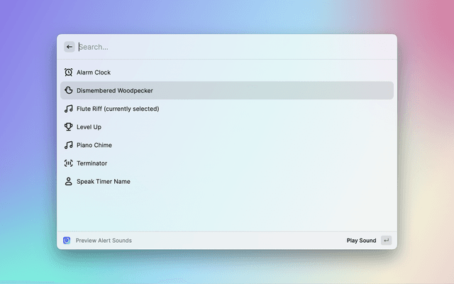• Preview Alert Sounds (test out the bundled timer alert sounds before selecting one in settings)