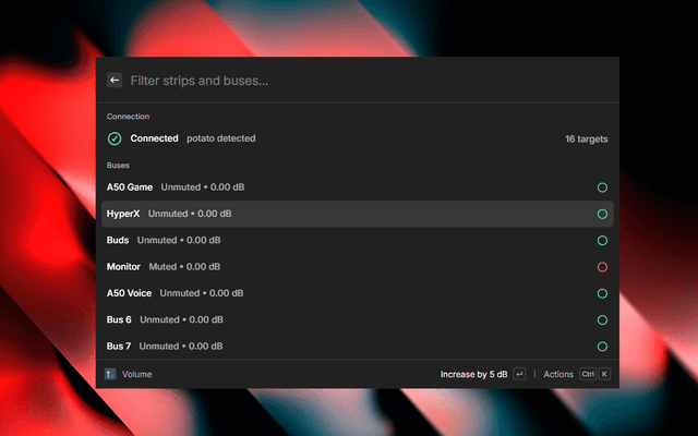 Control Voicemeeter strips and buses from Raycast on Windows.