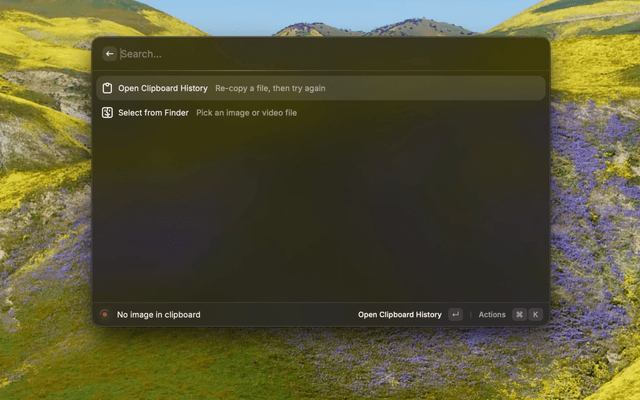 - Falls back to a native file picker or Clipboard History