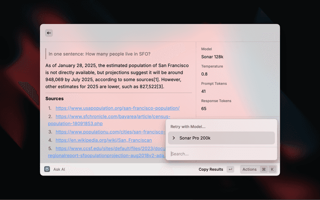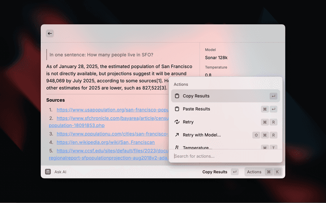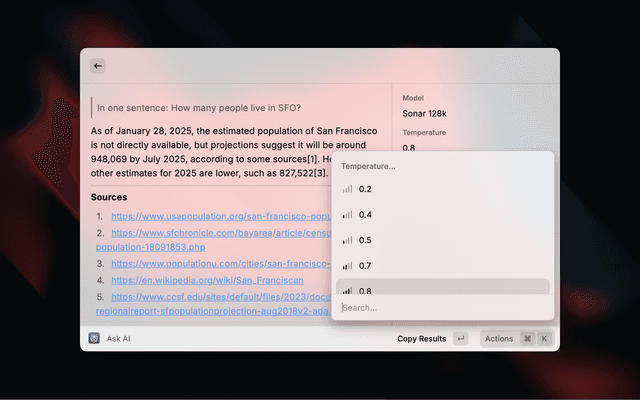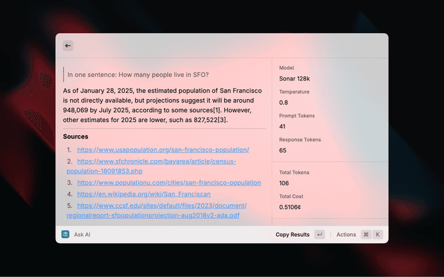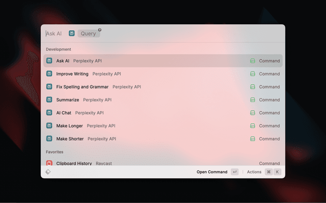Use the powerful models via Perplexity API from the comfort of Raycast.