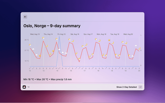 - Quick Day Queries: "Oslo fredag", "London next monday", "Bergen 25"