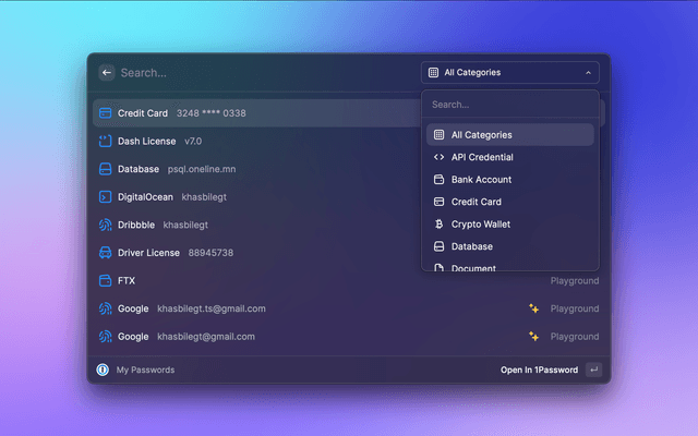 Search, open or edit your 1Password passwords from Raycast