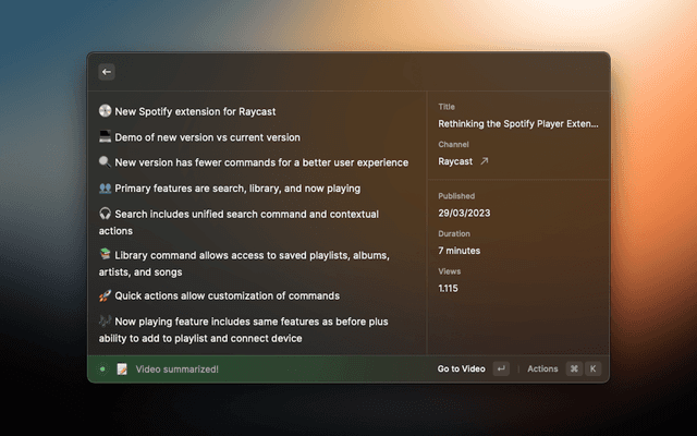 summarizeVideoWithRaycast