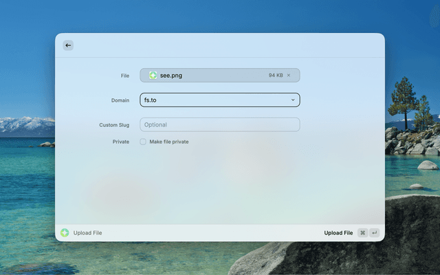 - File Upload: Upload files with custom domains and optional private access