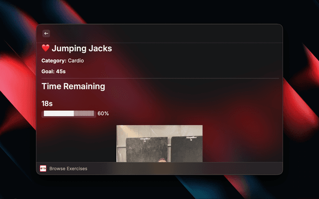 - Menu Bar Reminders: Configurable reminders to take exercise breaks